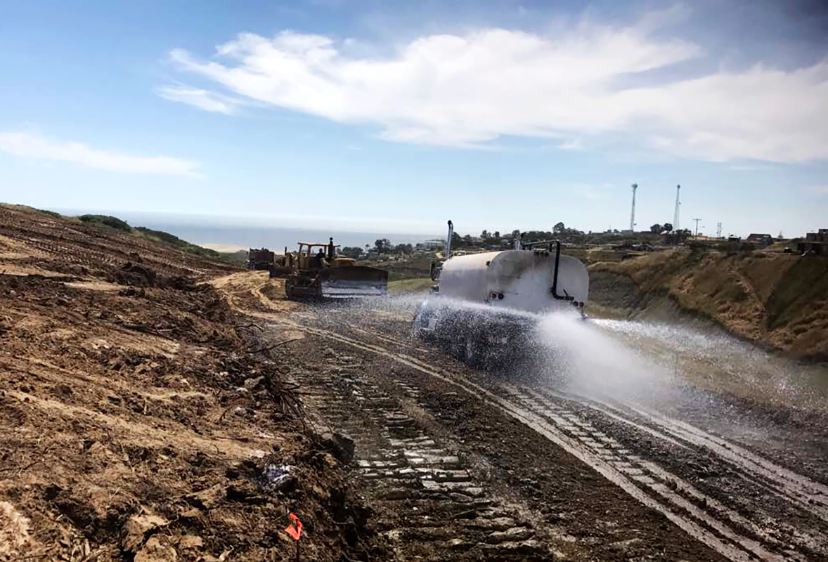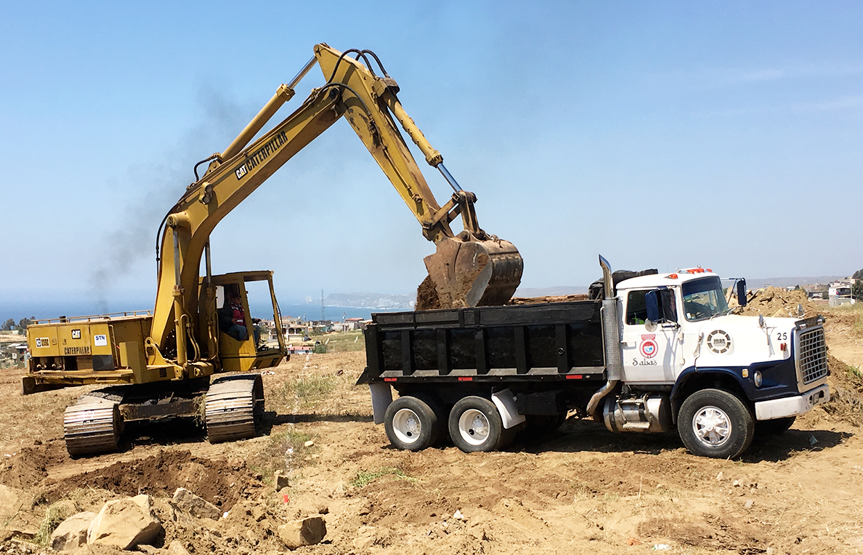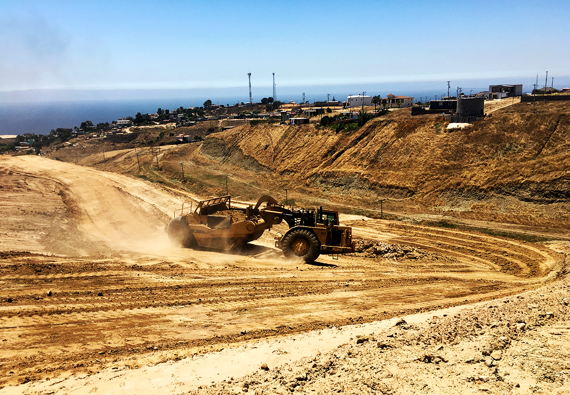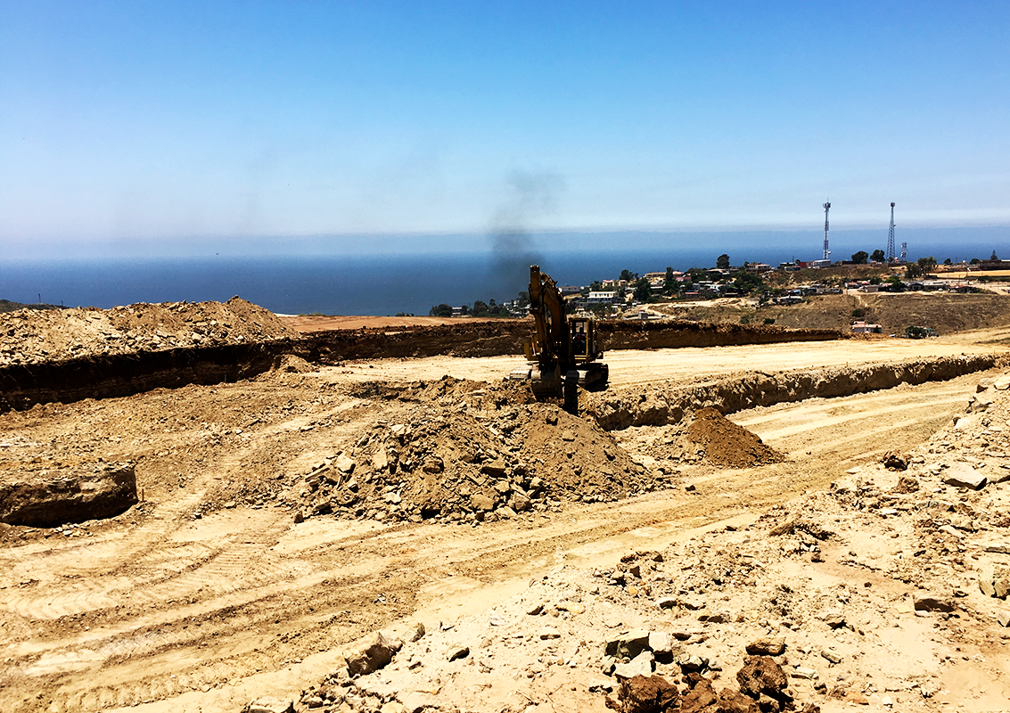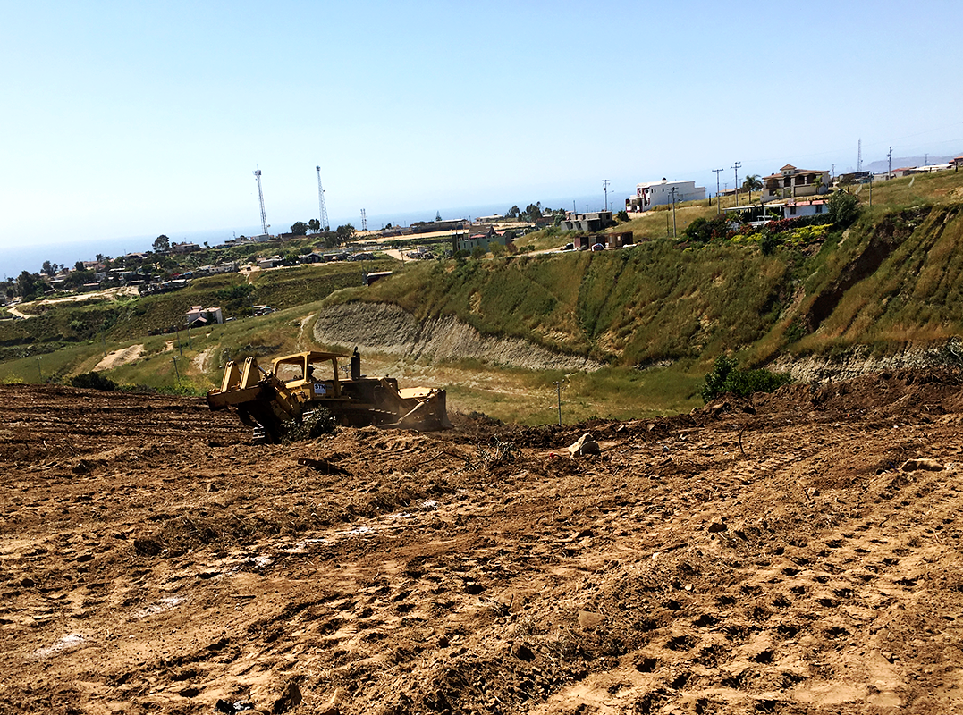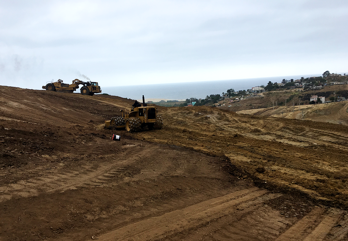 Trabajos de movimientos de tierra en el Fraccionamiento El Descanso II, 1ra etapa.